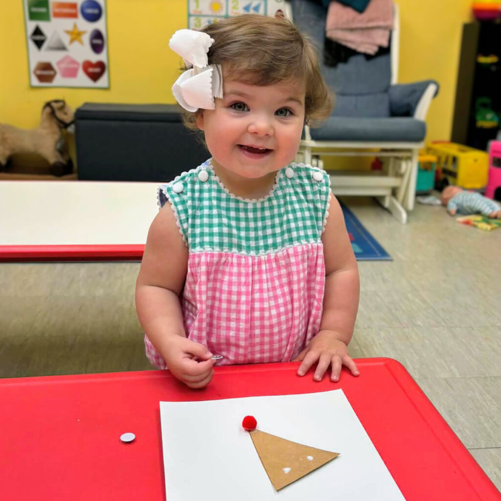 Our toddler classrooms provide a calm, secure environment that balances the joy and wonder of toddler play with the introduction of structure and routine in a classroom setting. With patience and a Christ-like temperament, our toddler teachers build strong bonds with each child, creating a sense of safety and trust that supports healthy emotional development. Through songs, stories, age-appropriate crafts, and play centers, our toddlers strengthen fine and gross motor skills, social awareness, and language development.