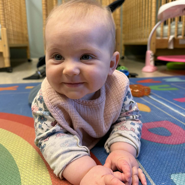 From day one, our infant teachers are intentional about creating a strong relationship with both the infant and their family to ensure every child feels safe, secure, and loved while in our care and families can have peace of mind throughout the day knowing their baby is in good hands.Through songs, stories, tummy time, sensory play, and hands-on exploration, our infants strengthen early fine and gross motor skills and social awareness. Daily routines offer consistency and comfort, while gentle encouragement fosters curiosity and confidence in growing towards their next milestone.